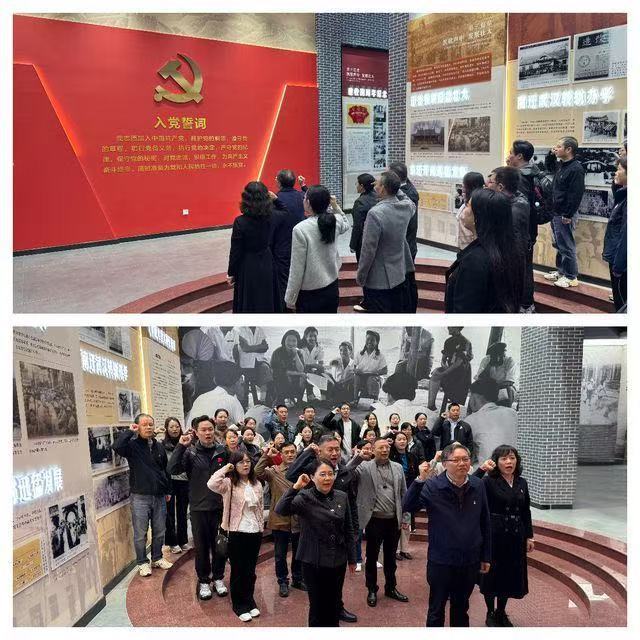 在中原大学旧址纪念馆,档案馆、校史馆党支部与研究生院党支部联合开展10月主题党日活动,党员同志们庄严重温入党誓词,认真学习中国共产党第二十届中央委员会第四次全体会公报、习近平总书记给全国特岗教师代表和天津大学的回信精神等文件精神。