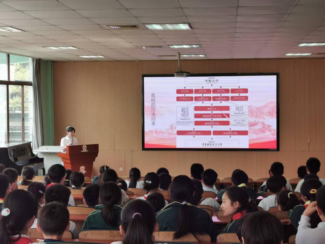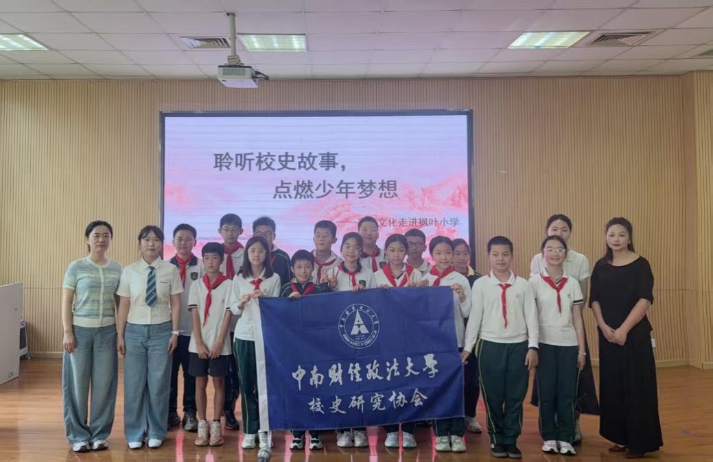 2026年4月10日下午,中南财经政法大学校史研究协会走进武汉枫叶国际学校小学部,开展了一场以“聆听校史故事,点燃少年梦想”为主题的校史宣讲活动。校史讲解员杨柳涵以生动的讲述与真挚的情感,为枫叶小学的师生们带来了一堂别开生面、引人入胜的校史课。